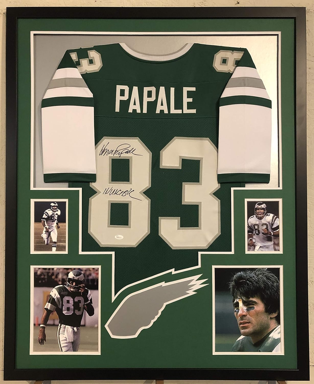 Vince Papale Signed Eagles 34x42 Custom framed eagles jersey