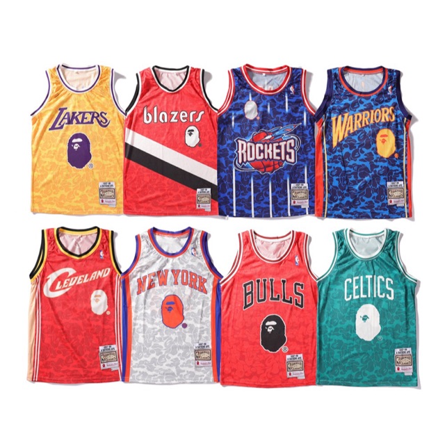 A BATHING APE® X MITCHELL \u0026 NESS | us bape basketball shirt